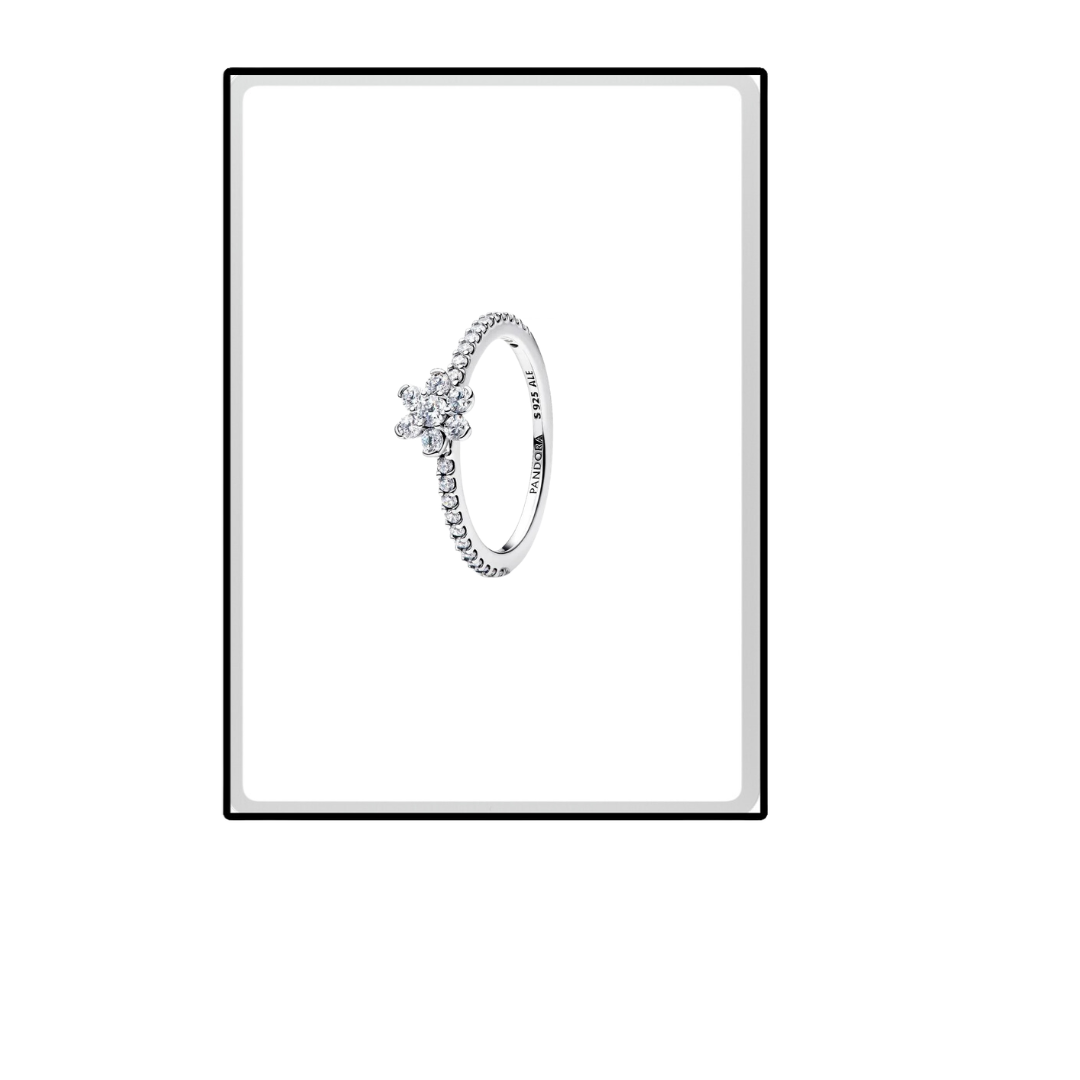 Flores e brilho. Em prata de lei 925, este anel apresenta uma flor elevada com pedras transparentes e um aro meio pavé. Uma afirmação brilhante que nunca passa de moda.